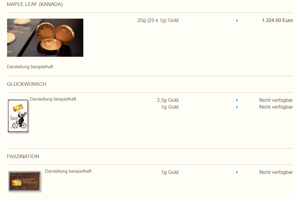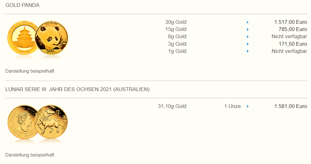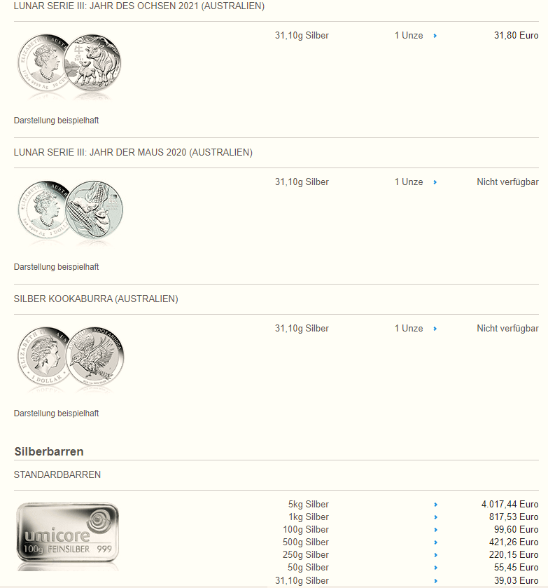 Sie können Münzen oder Barren online bestellen, ohne dass ein Mindestbestellwert erforderlich ist.