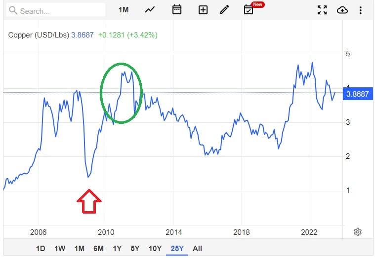 Falls es jedoch in Europa oder den USA zu Rezessionen kommt und die Erholung Chinas ausbleibt, könnten die Kupferpreise vorübergehend sinken. Dies würde langfristig attraktive Kaufgelegenheiten schaffen.