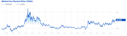 Dieser ETF repliziert den Spotpreis von Silber, basierend auf dem LBMA Silver PR US Cents Index. Wie der iShares ETF hat er USD als Basiswährung und keine Währungsabsicherung. Er ist ebenfalls in Irland domiziliert, und der Verwahrer des Silbers ist JPMorgan.
