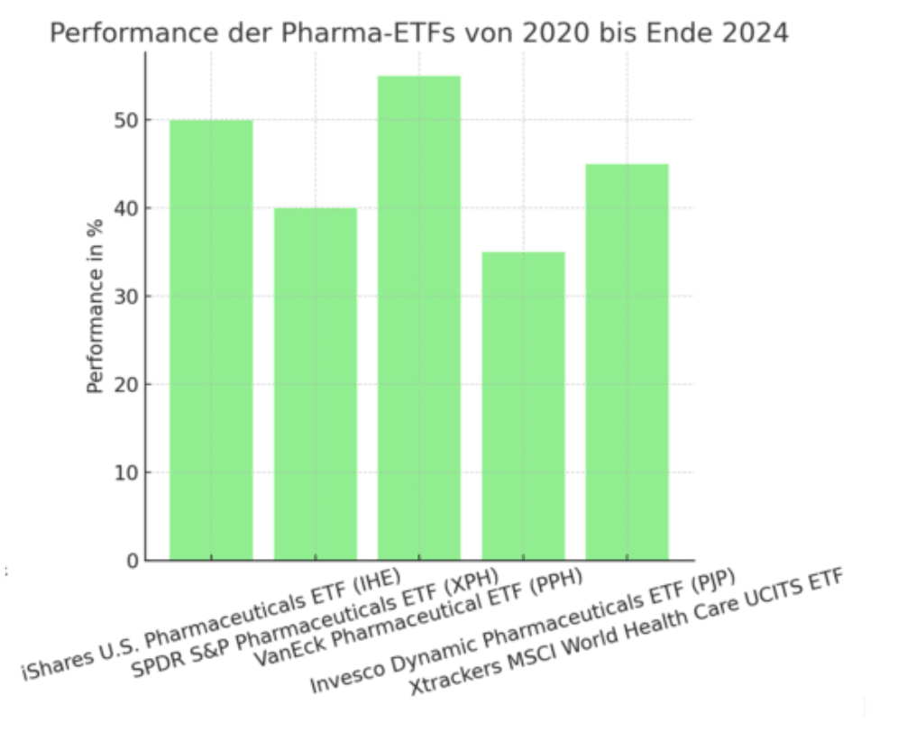 | iShares U.S. Pharmaceuticals ETF (IHE) | Ca. 700 Millionen | 2006 | Johnson & Johnson (22%), Pfizer (15%), Merck & Co. (14%) |