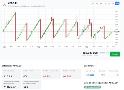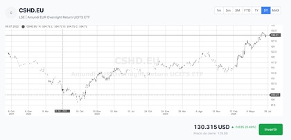 Man könnte sagen, dass es sich als ideal erweist, um unser Bargeld zu einem leicht höheren Zinssatz als bei verzinsten Konten zu belohnen, mit vollständiger Liquidität und ohne Bindungsvereinbarung, da wir den ETF jederzeit verlassen können - was bei Einlagen oder Fondsanlagen normalerweise nicht der Fall ist.