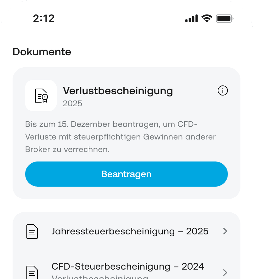 Die automatische Besteuerung umfasst alle Transaktionen im Invest- und CFD-Konto, die Kapitalerträge erzeugen – explizit genannt werden: Verkauf von Aktien/ETFs, Schließen von CFD-Positionen, Dividenden und Kapitalmaßnahmen, Zinsen.