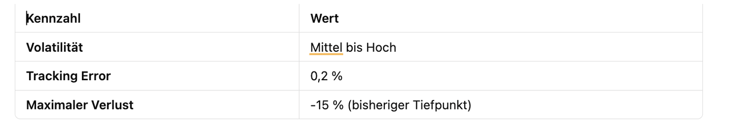 Wie bei jeder Investition sind auch beim VanEck Defense ETF bestimmte Risiken zu beachten. Die wichtigsten Kennzahlen helfen Ihnen, diese besser zu verstehen: